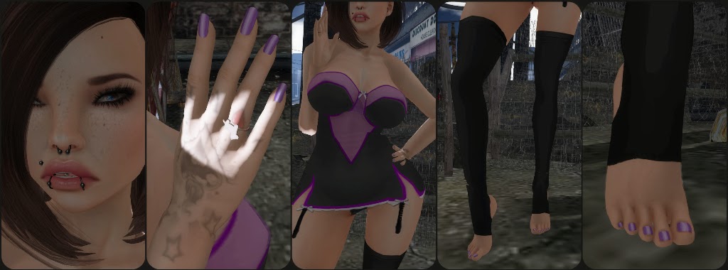 Hi Everyone! We have more from Bodify and the latest round of Suicide Dollz. The nails polish for both the hands and feet was created by Pretty Liar for the Bodify show. There are ten colors 5 light ones and 5 darks ones. The dress was designed by L!ke for this round of Suicide Dollz, and is available in 18 different color patters. The perfect little mix up for a night out.