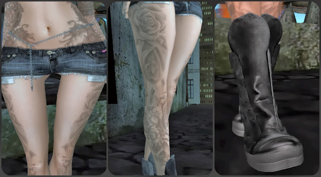 Next we have the latest shorts from LDP, they come in eight different patters (Black, Blue, Galazy, Roses Black, Sunset Grey, Triangles, Tribal, and Sunset), and easy to fit into a really cute out fit or to grunge down a bit like I decided to do. Finally I want to mention the latest tattoo from Dethly Productions Tattoos (DP). The Poison Ivy tattoo comes in three different shades and appliers are offered with them for the phat azz and Lola's. Now, onto the details: